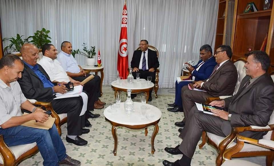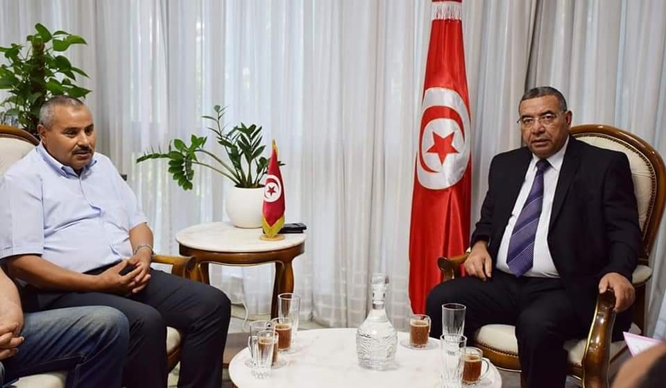 M. Moncef Sulaiti, Ministre de l'Equipement, de l'Habitat et de l'Aménagement du Territoire, a reçu, le mercredi 10 juin 2020, un membre de l'Assemblée des Représentants du Peuple de Jendouba, M. Tawfiq Al-Zairi, accompagné de la délégation d'accompagnement: